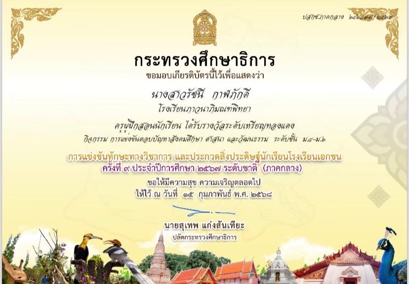 งานศิลปหัตถกรรมนักเรียน ครั้งที่ 72 ประจำปีการศึกษา 2567 สำนักงานเขตพื้นที่การศึกษามัธยมศึกษาสุพรรณบุรี รายการแข่งขันภาพยนตร์สั้น ระดับช่วงชั้น ม.1-3 ,ระดับช่วงชั้น ม.4-6 |